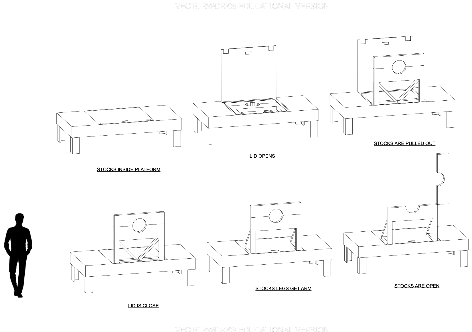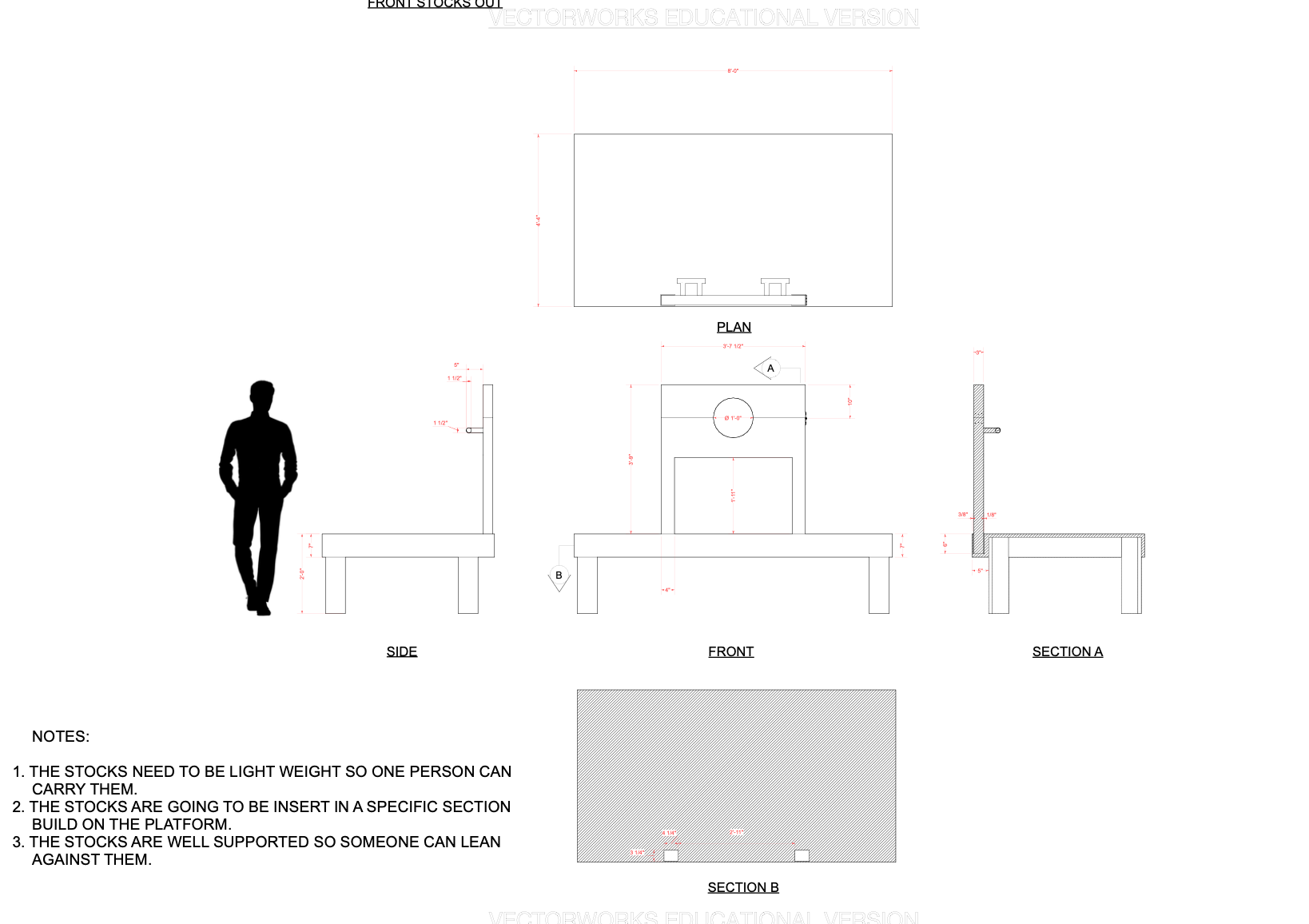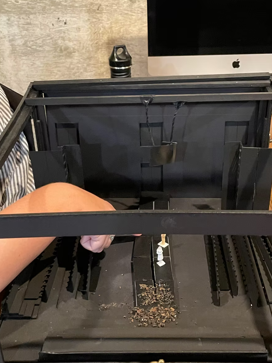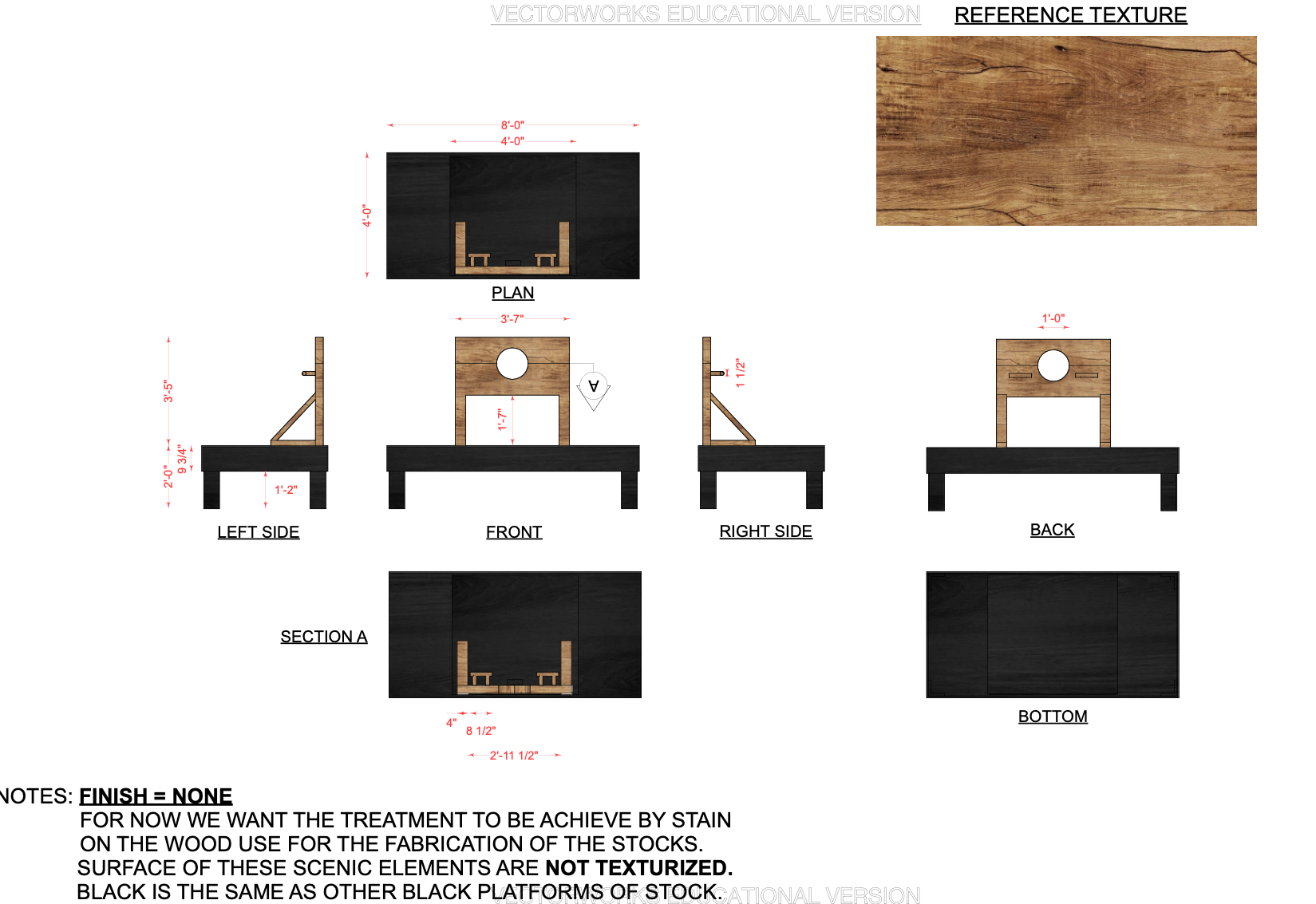We designed a 10-by-8-foot blade to hang above the stage, rigged to drop at a key moment—“by accident.” We also engineered the wooden head-chopping structure to fold and move quickly, keeping the illusion intact while staying practical for the run.