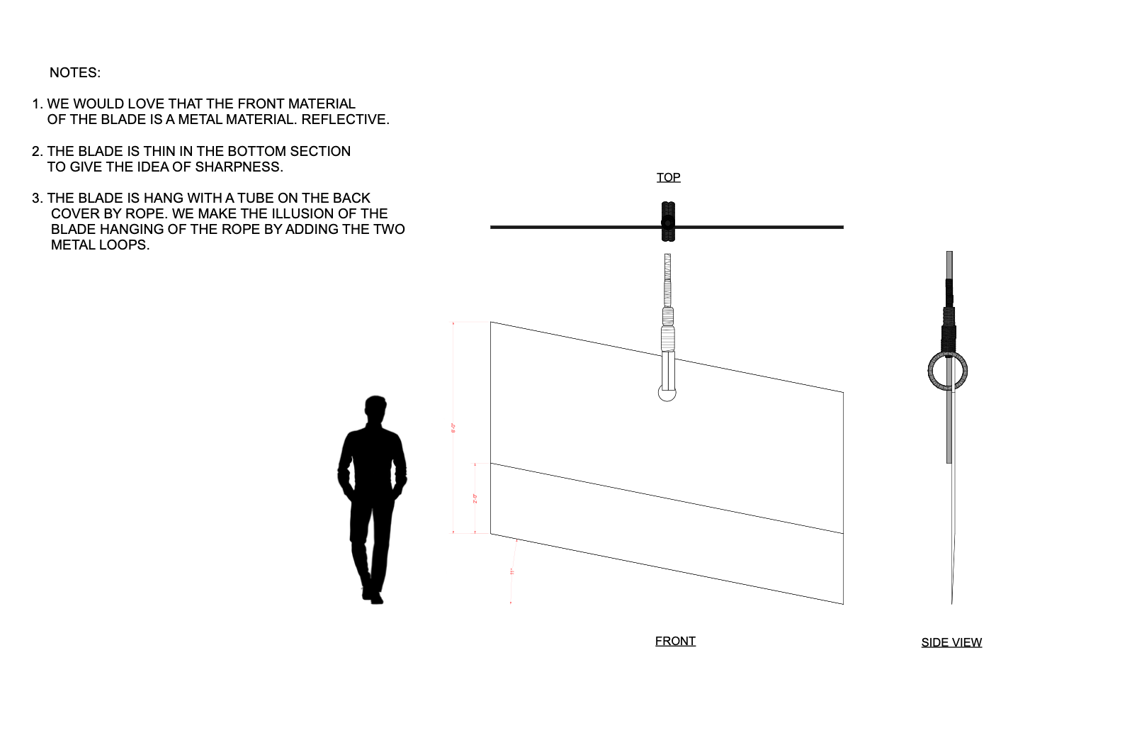 One of the first images that stuck was a blade. Not just as a weapon, but as a symbol—something to fear. It became the first thing the audience saw. Heavy, sharp, suspended. You walked in and thought: What if it falls? When is it going to fall?