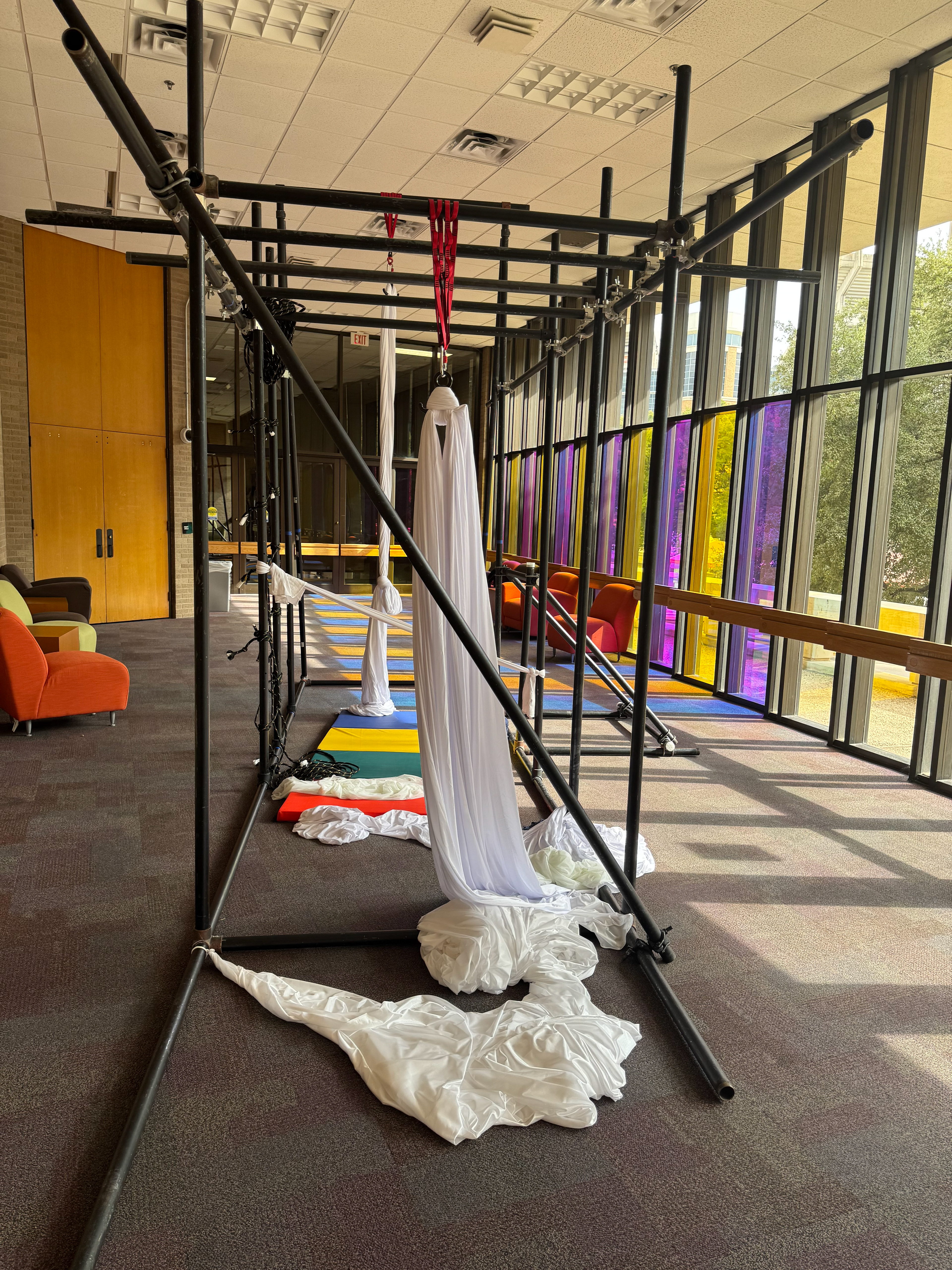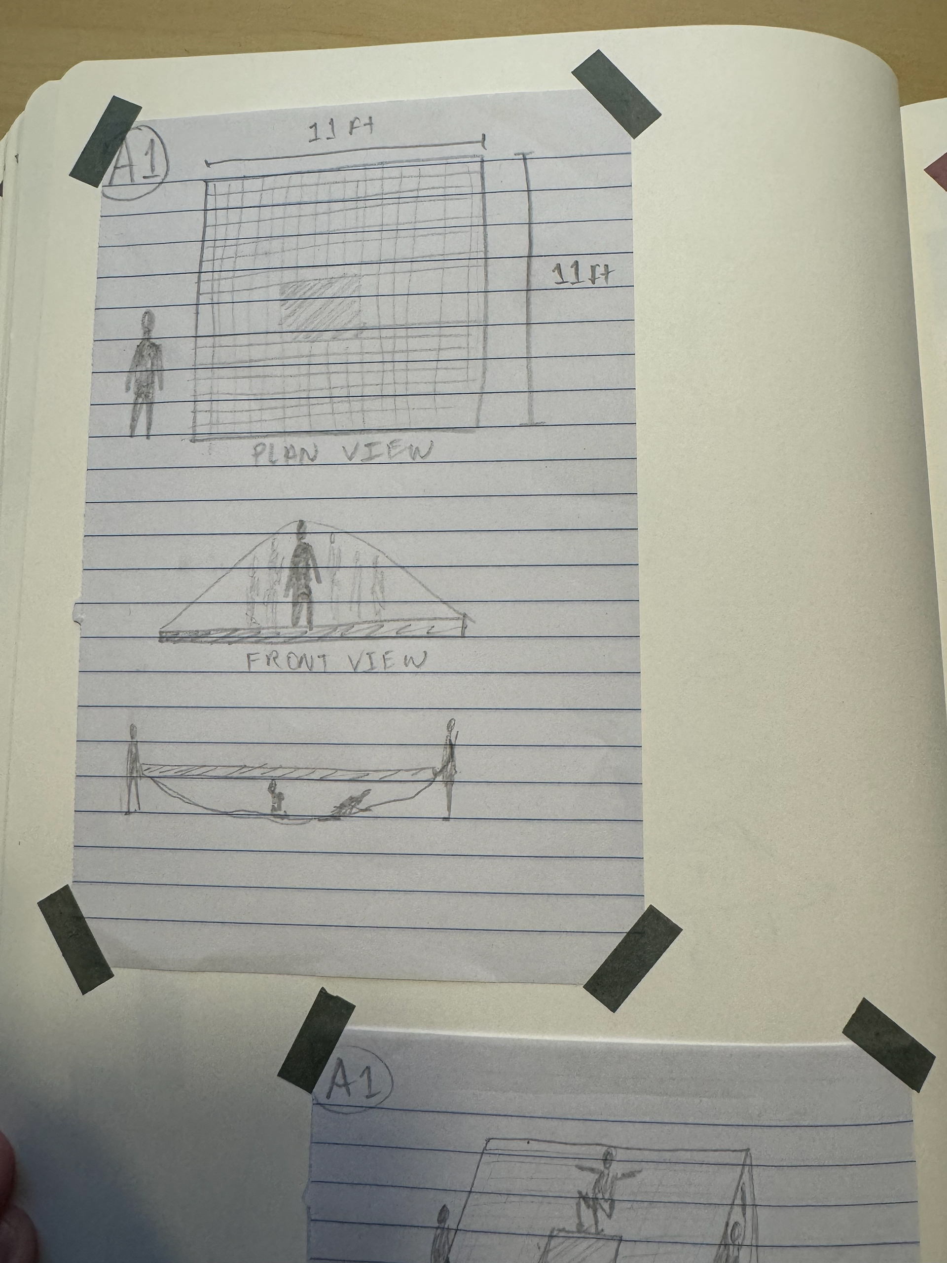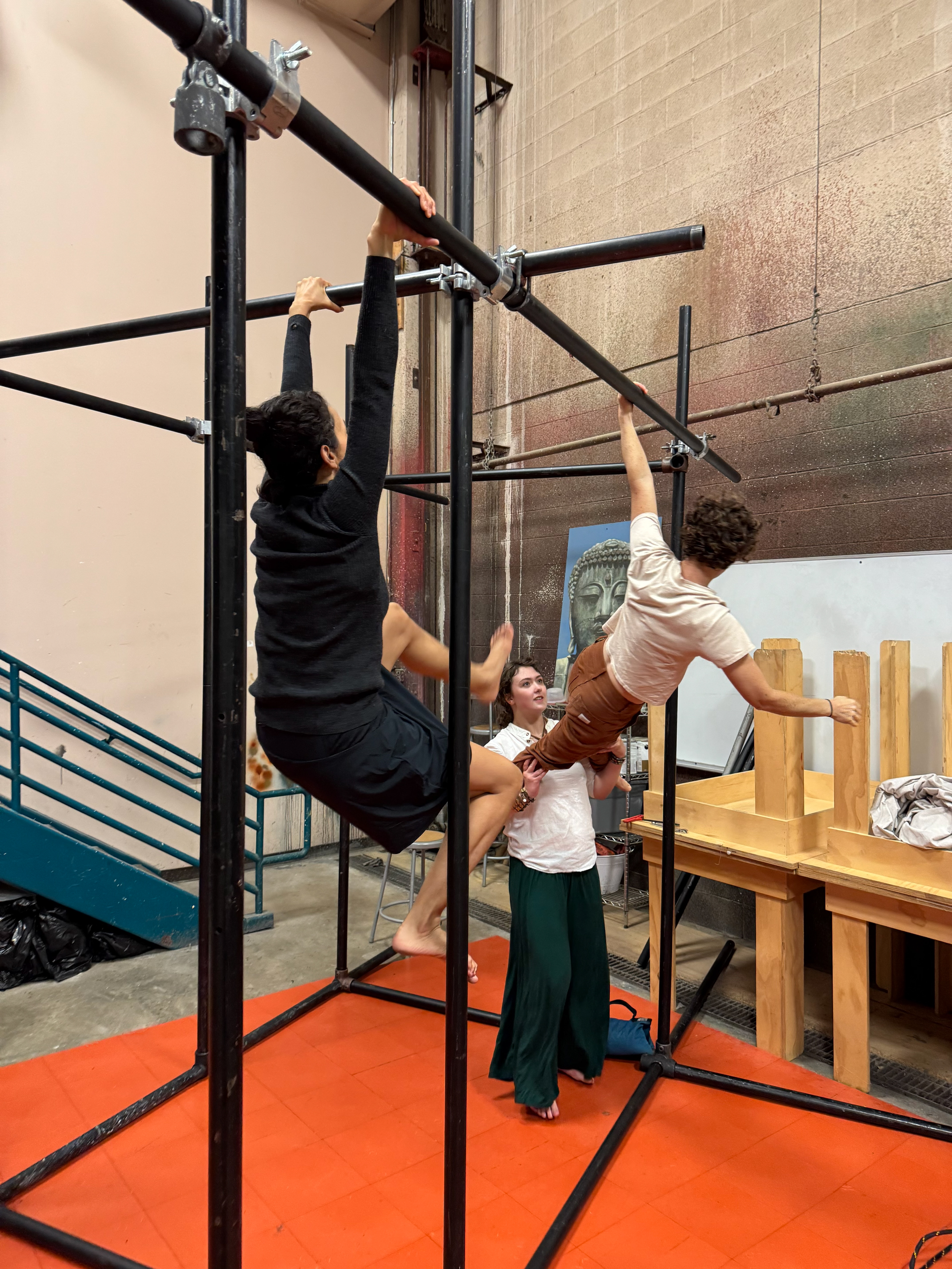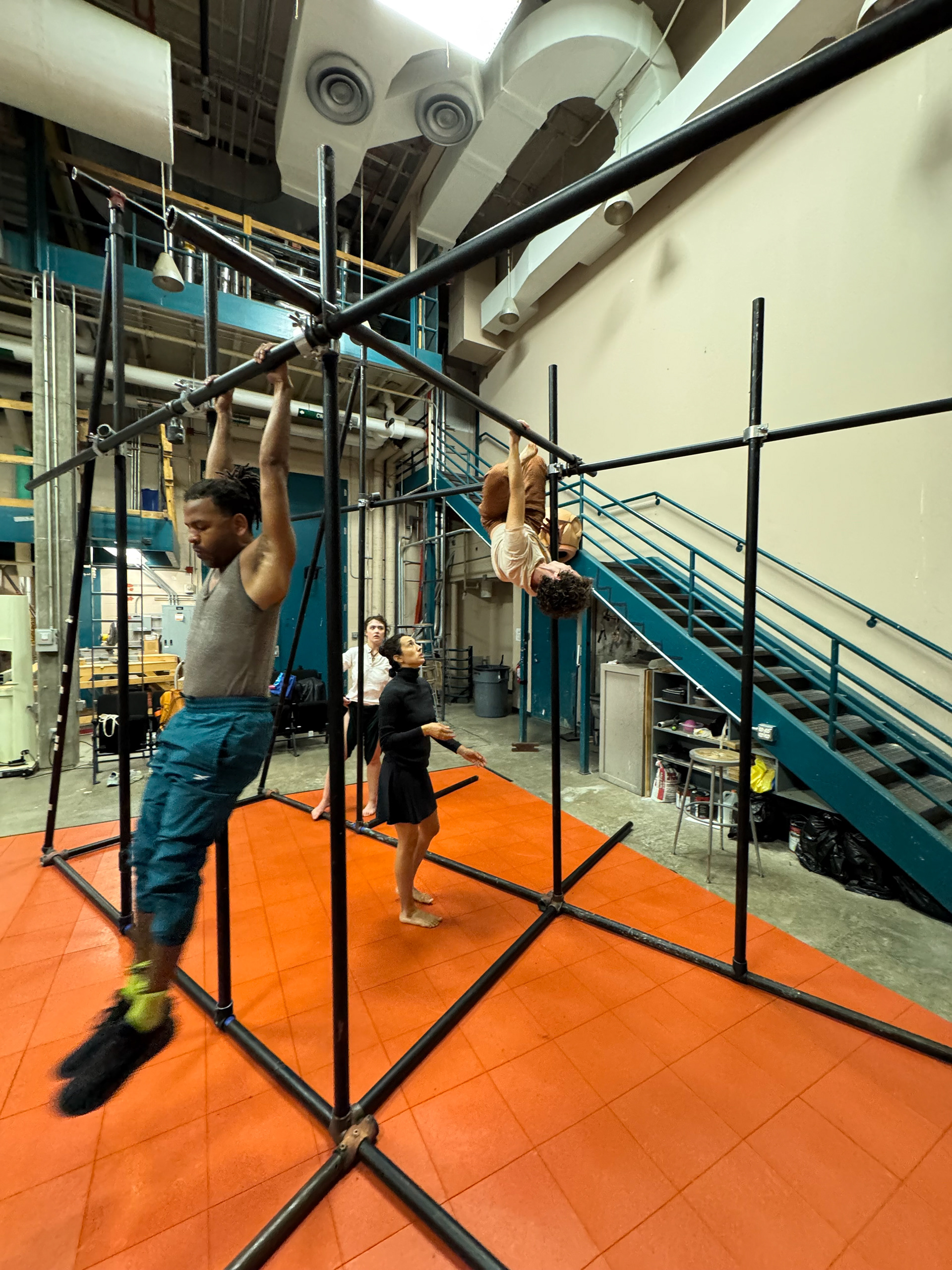 We learned that for the performers to fully engage, the structures needed strength. So we built new frames using ½” schedule 40 steel pipe—allowing the body to hang, support, and merge with the structure in a more physical, grounded way.