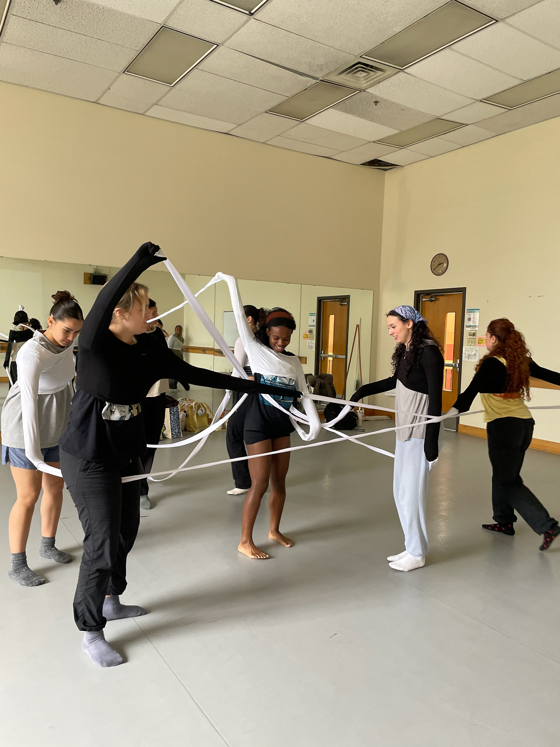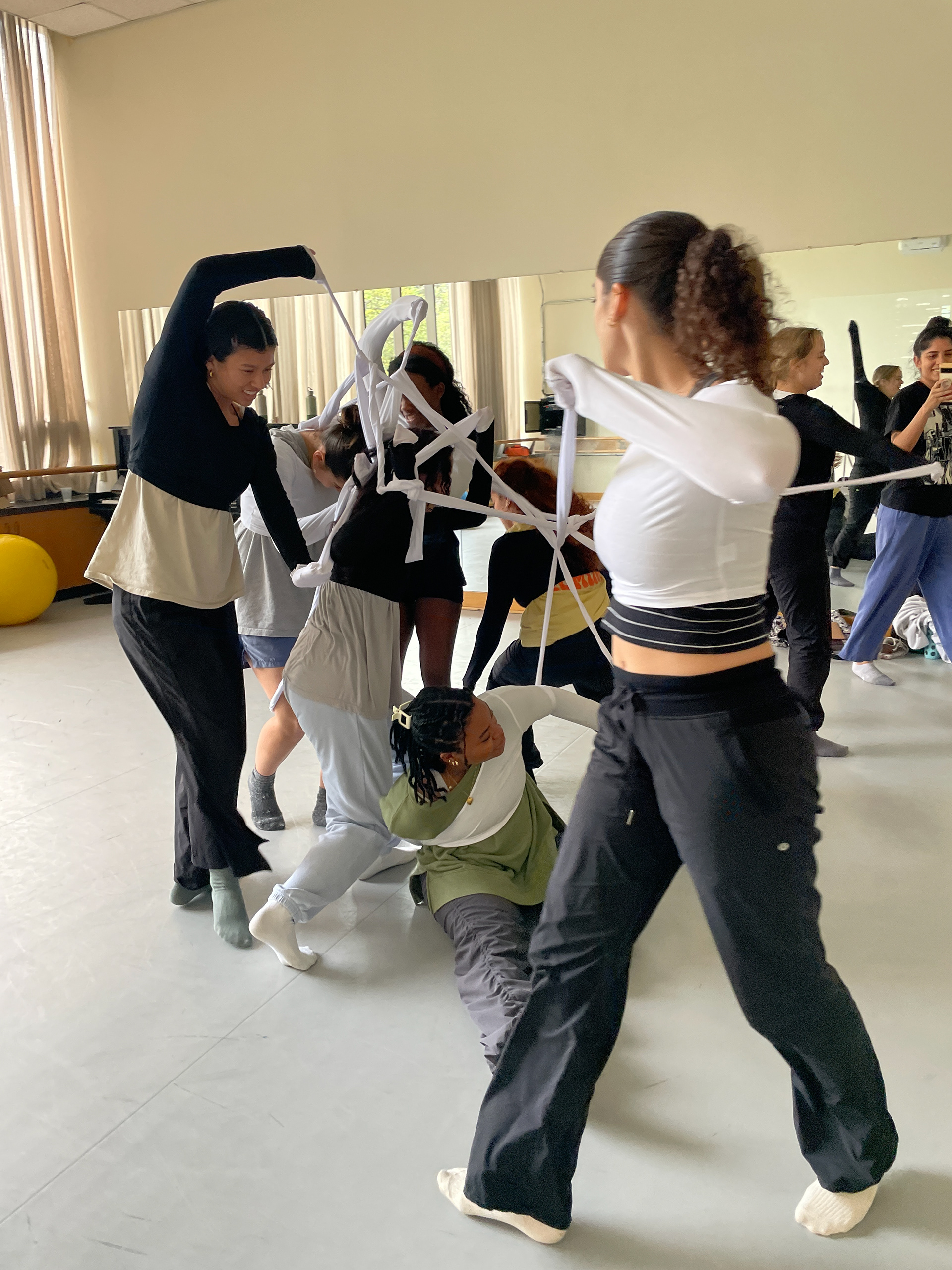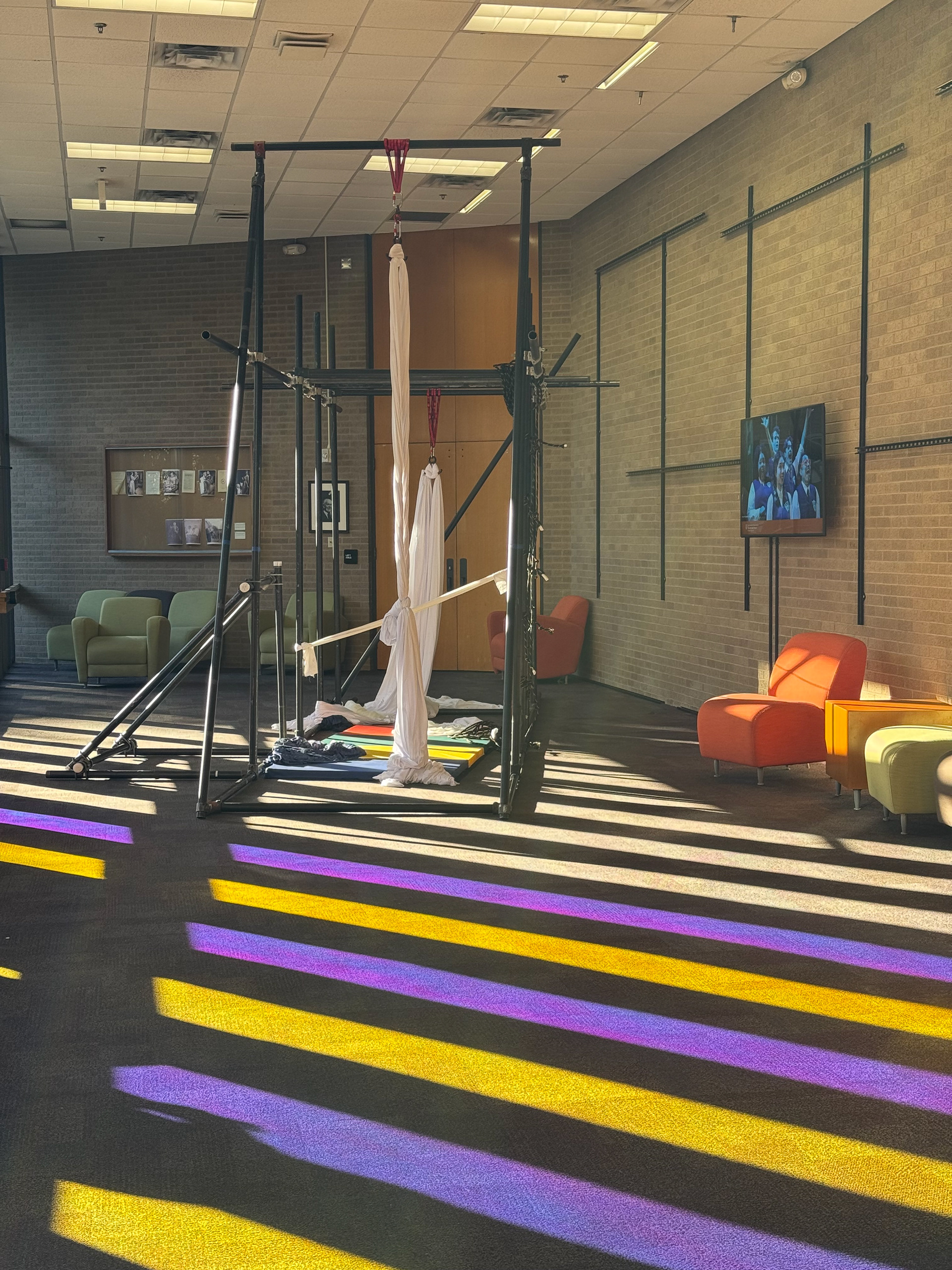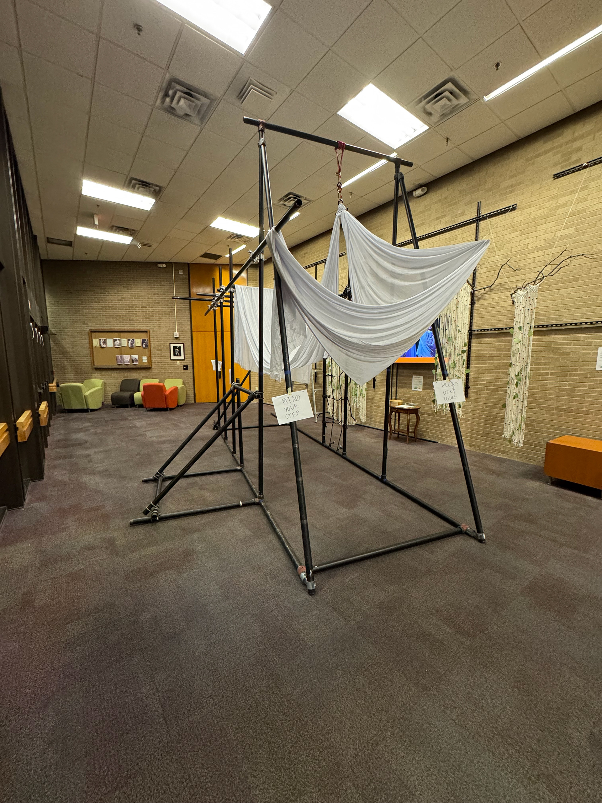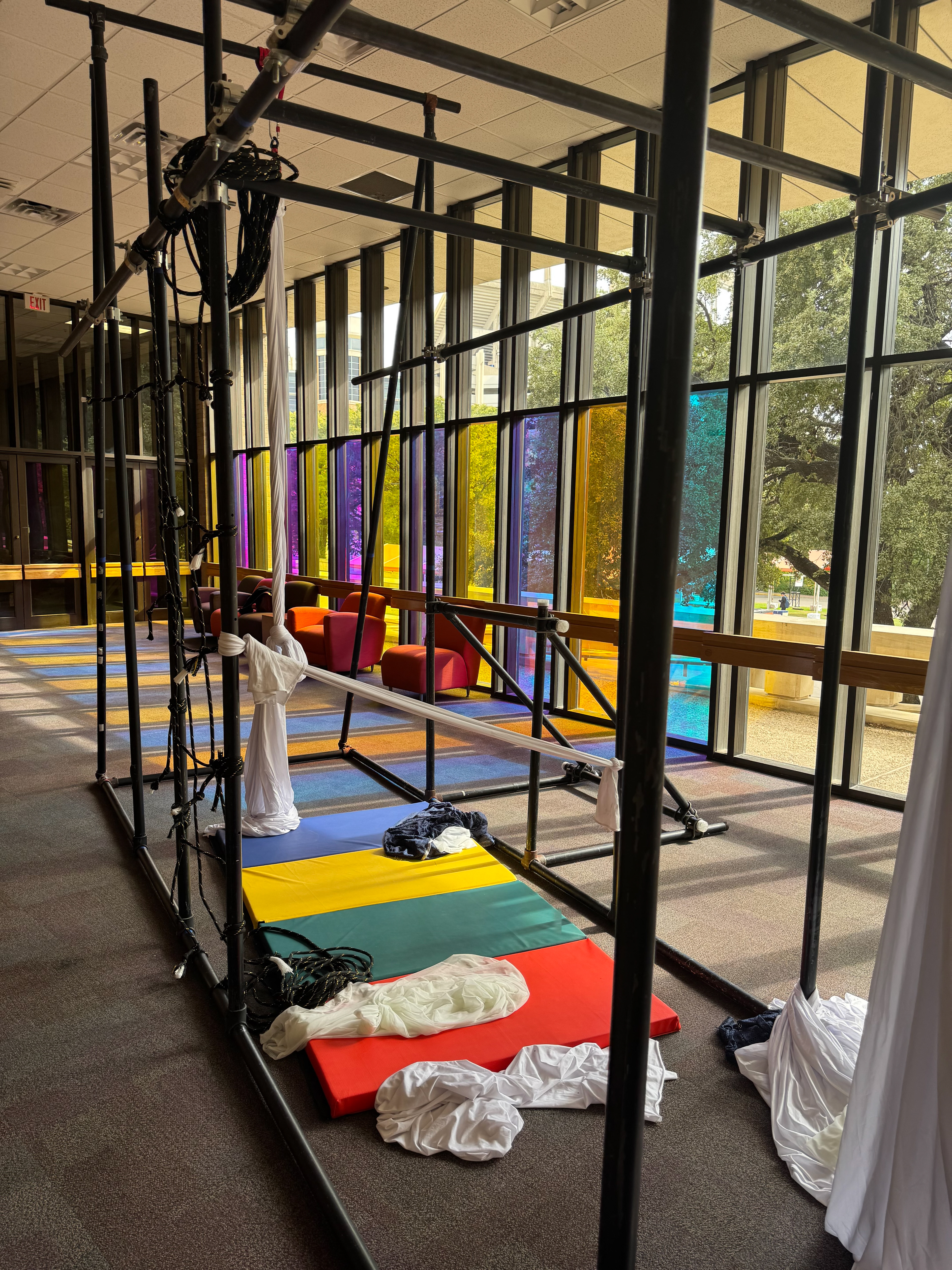 We learned that for the performers to fully engage, the structures needed strength. So we built new frames using ½” schedule 40 steel pipe—allowing the body to hang, support, and merge with the structure in a more physical, grounded way.
