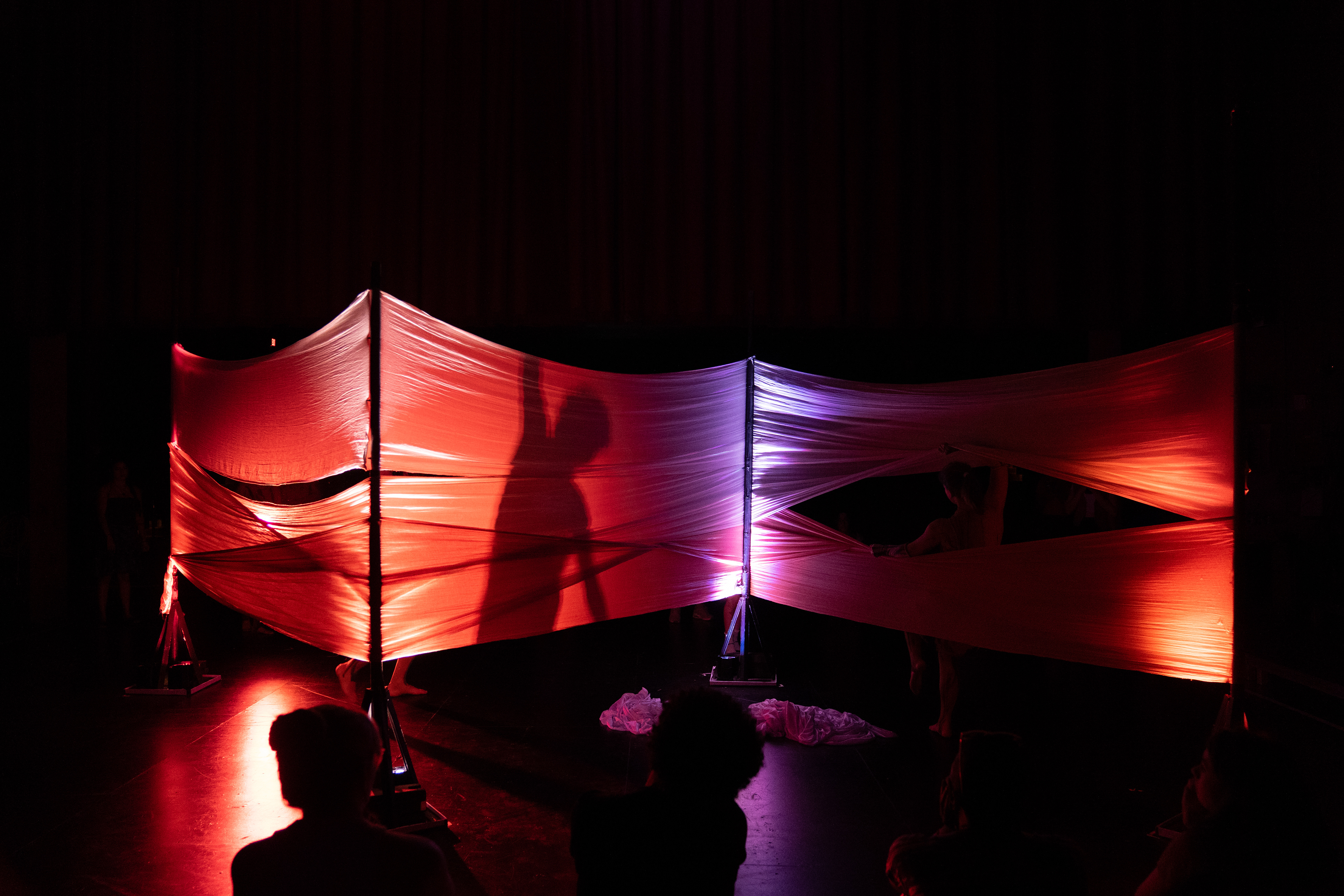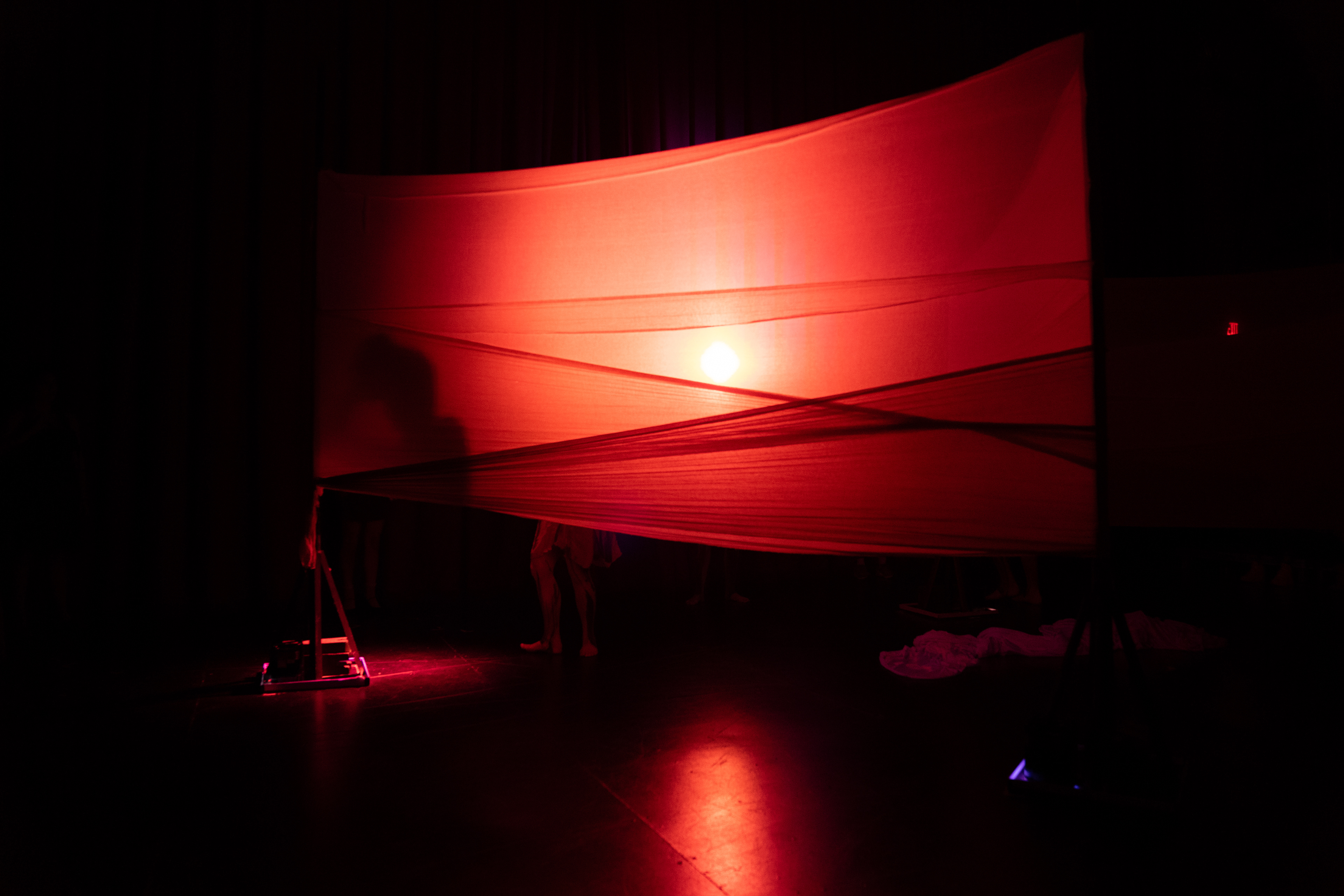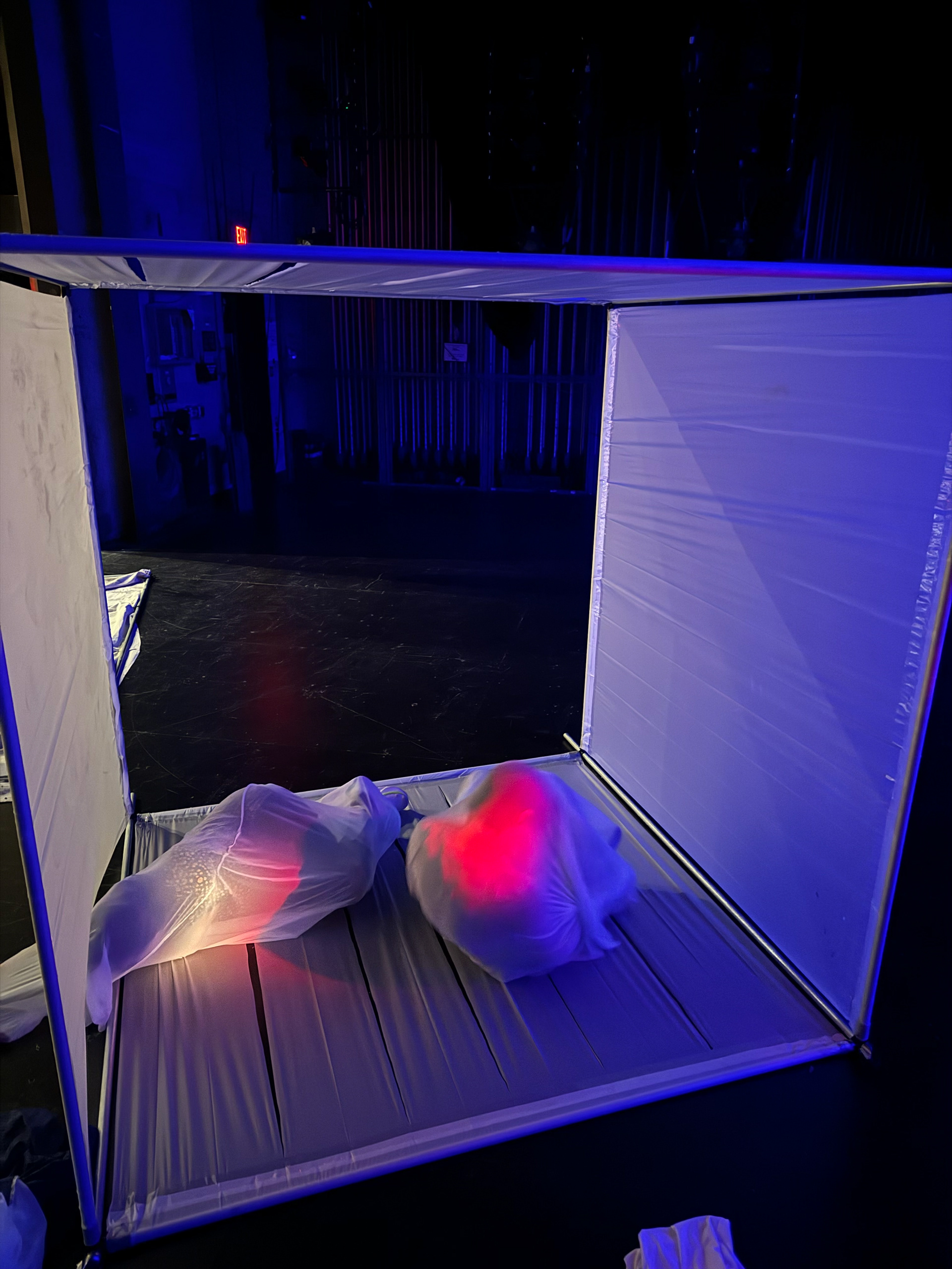 Choreographer Venese Alcantar and I began experimenting with structures. We combined rigid frames with soft materials like shower curtains and painter’s cloth. The result: ghostlike, industrial forms that contrasted beautifully with the performers’ bodies.