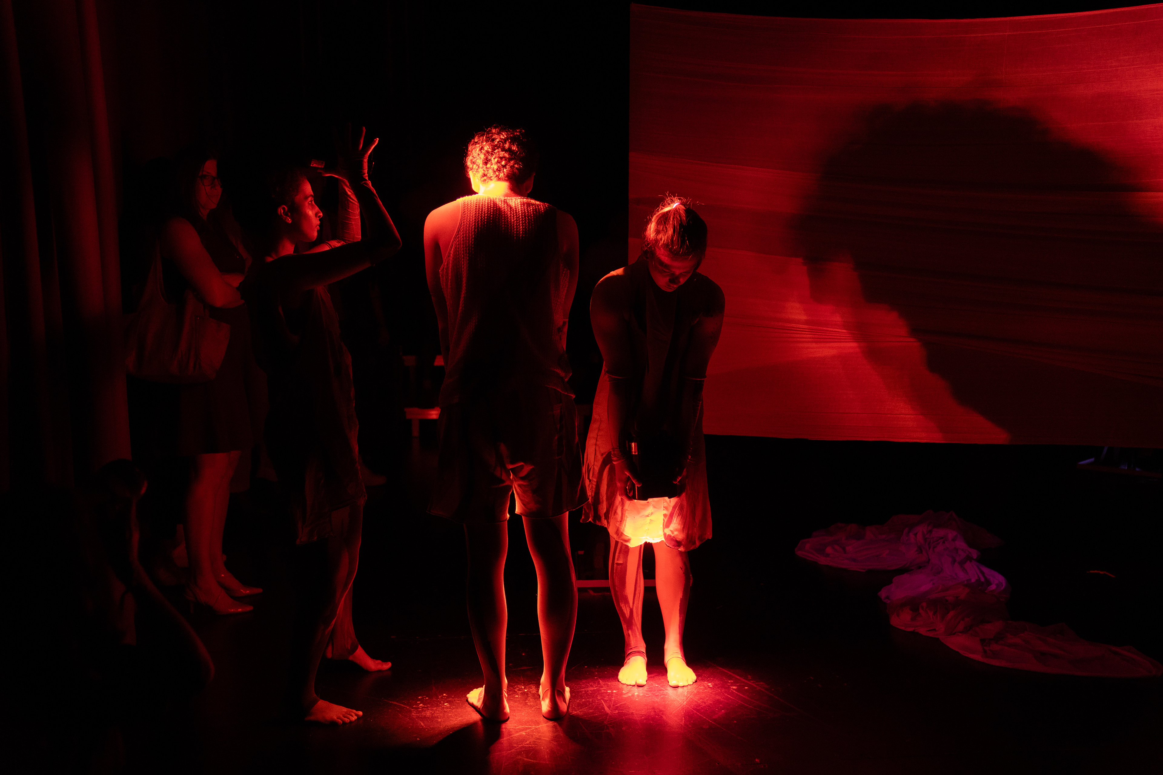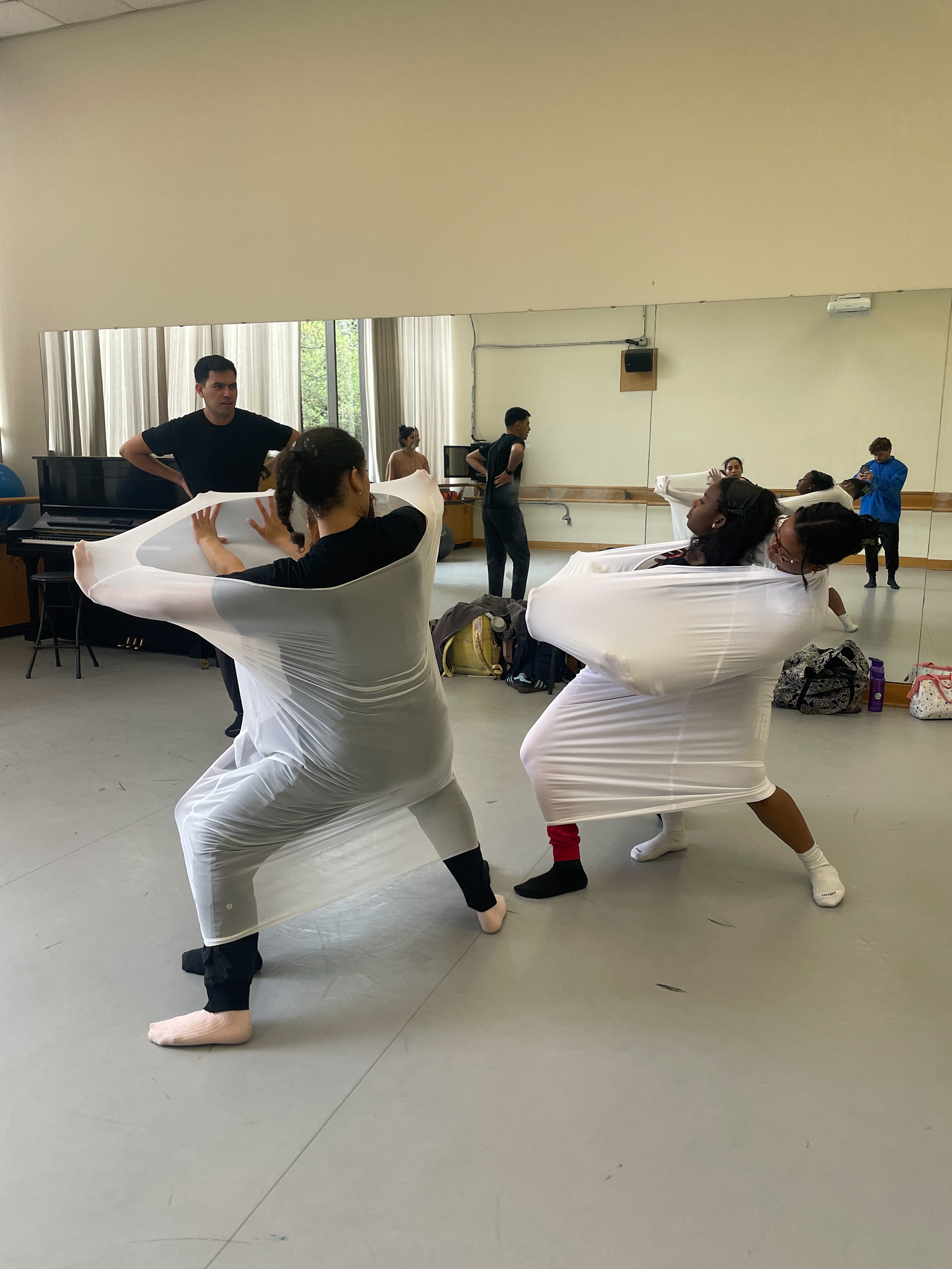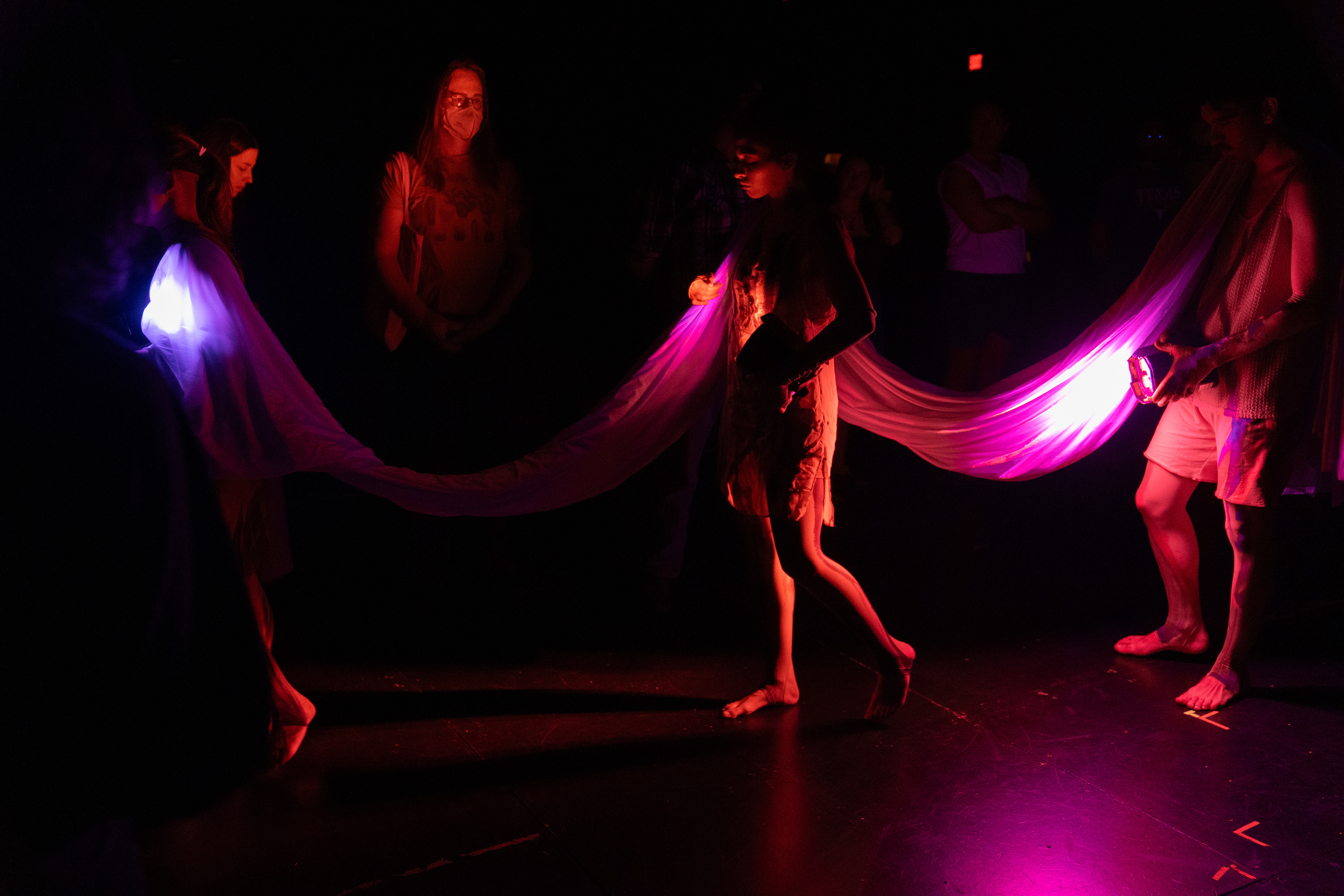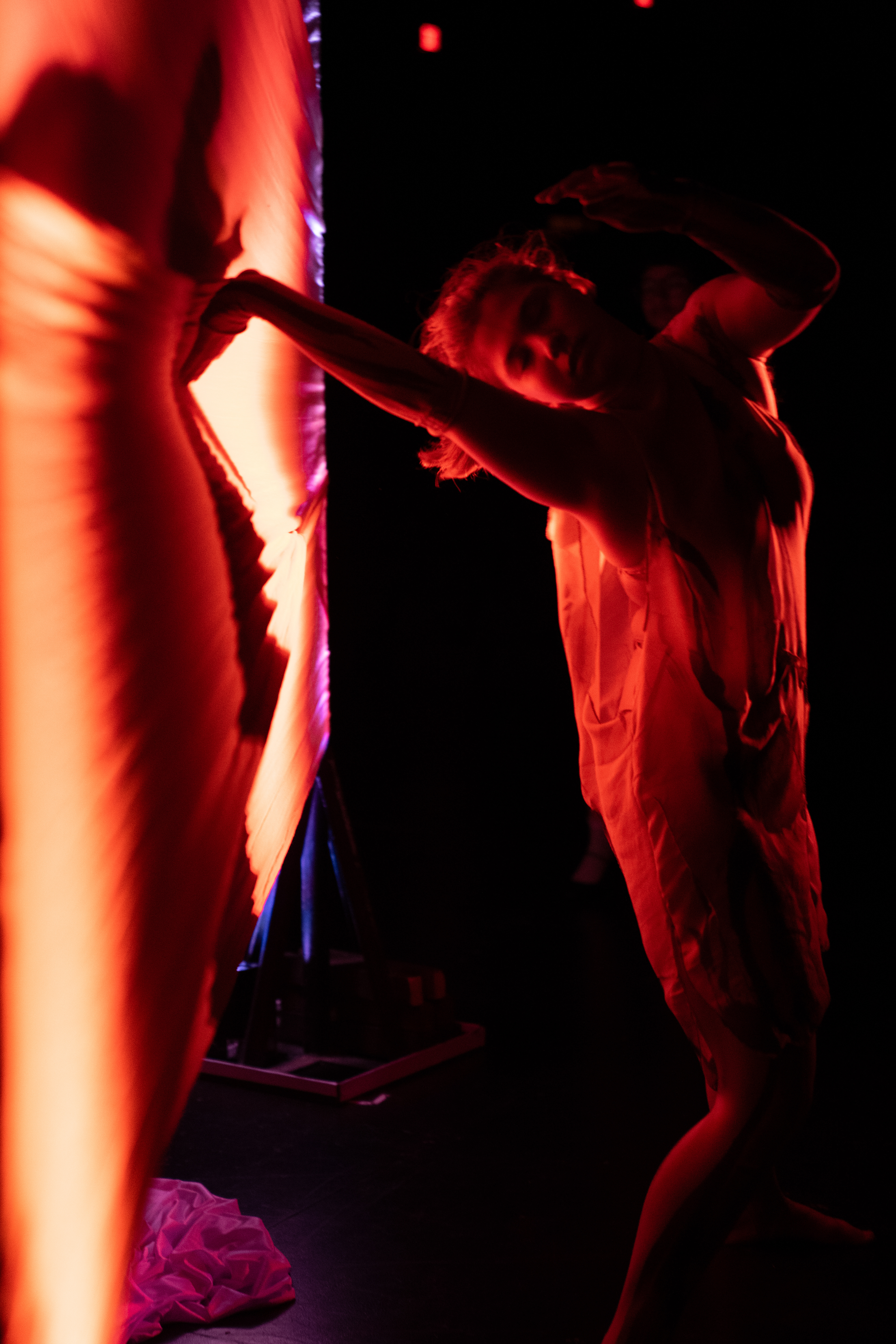 Choreographer Venese Alcantar and I began experimenting with structures. We combined rigid frames with soft materials like shower curtains and painter’s cloth. The result: ghostlike, industrial forms that contrasted beautifully with the performers’ bodies.