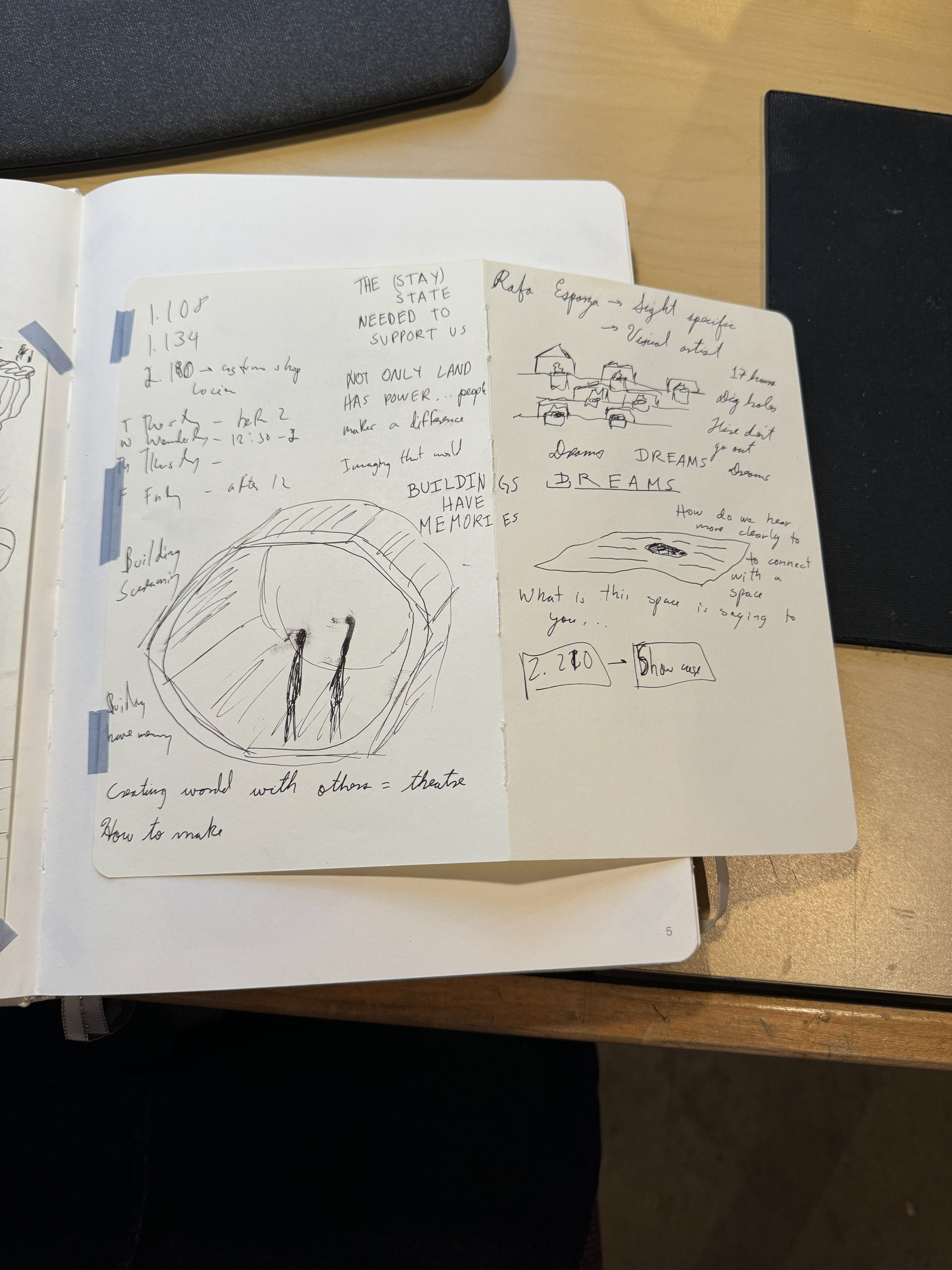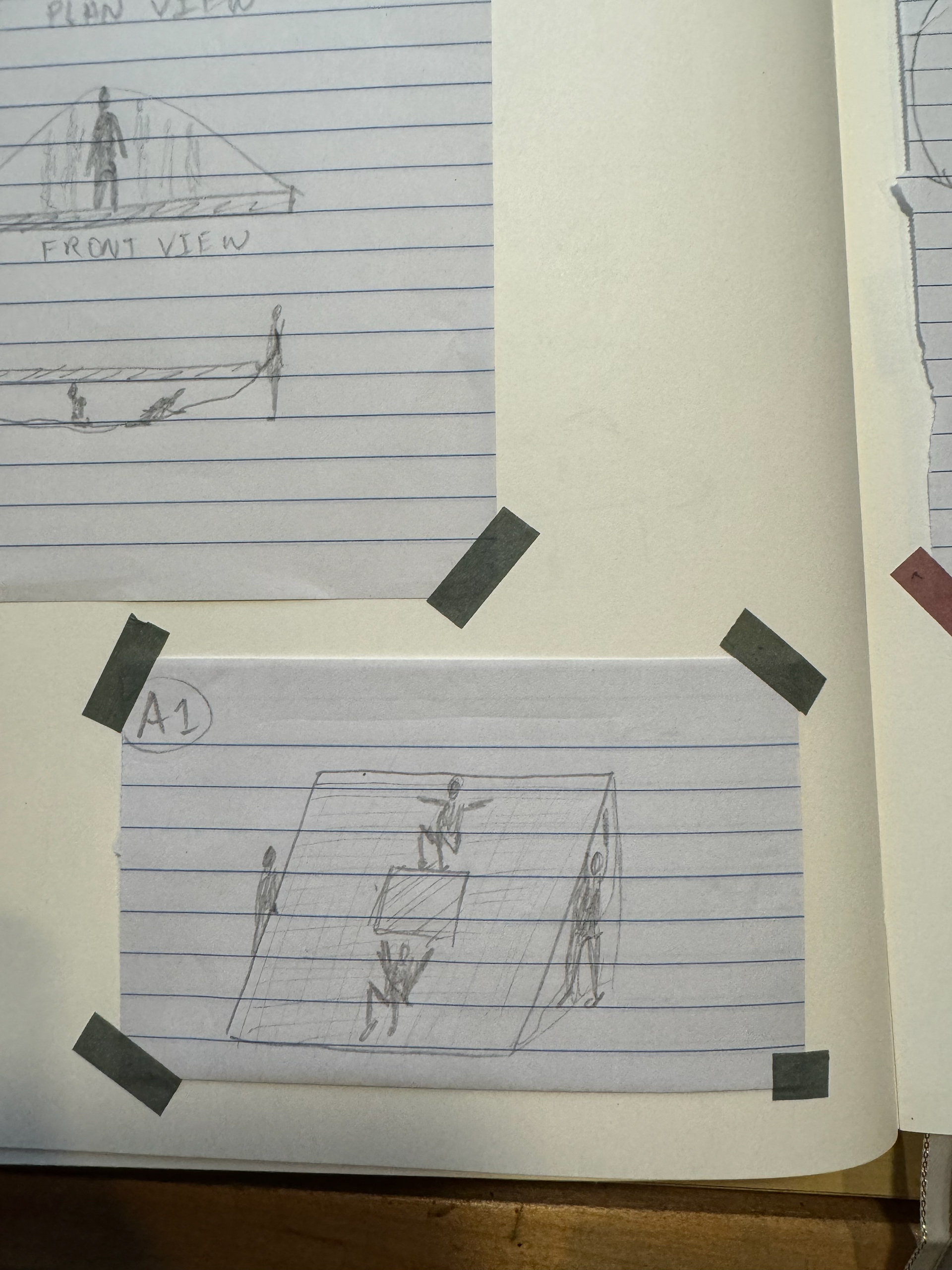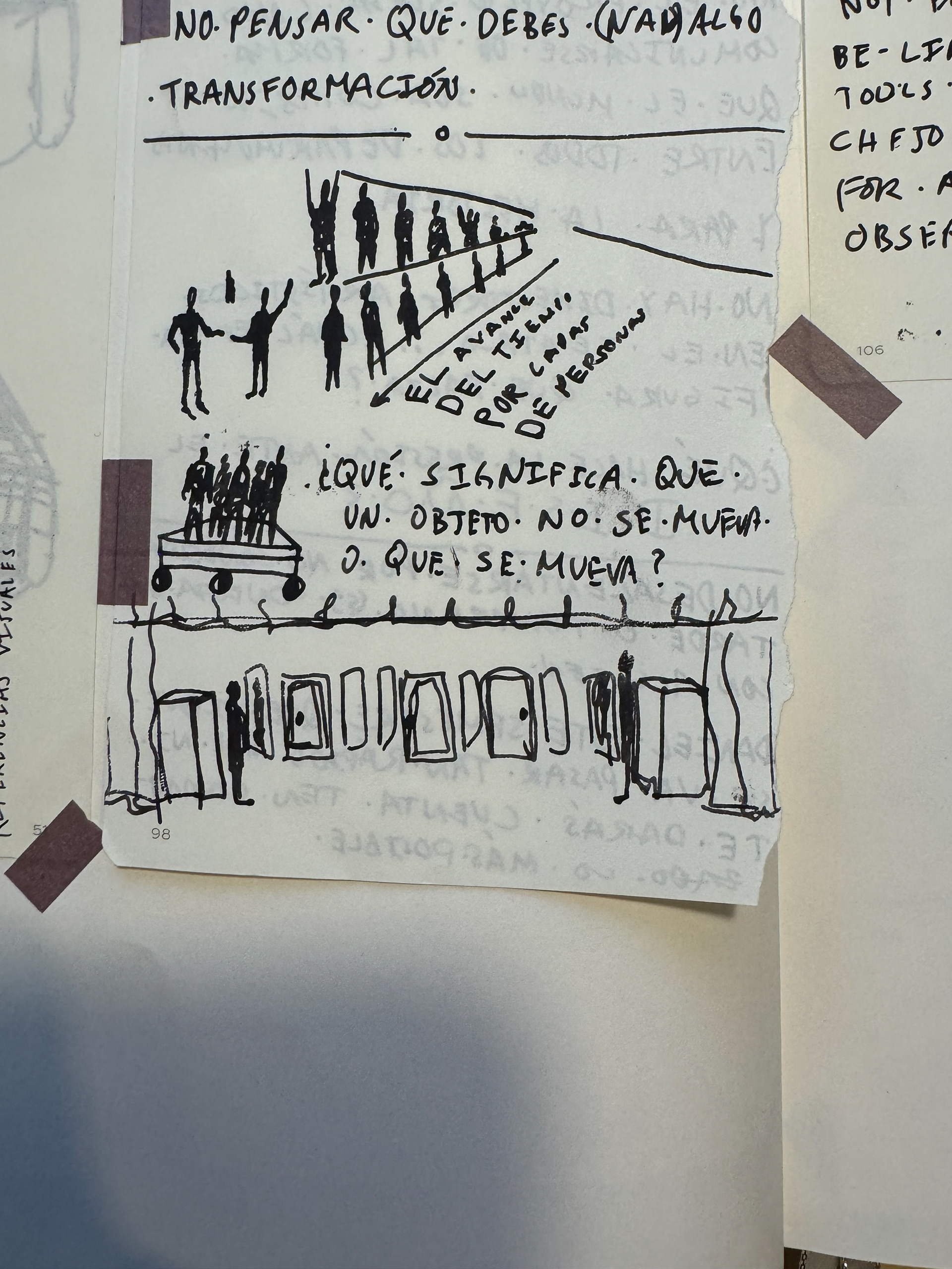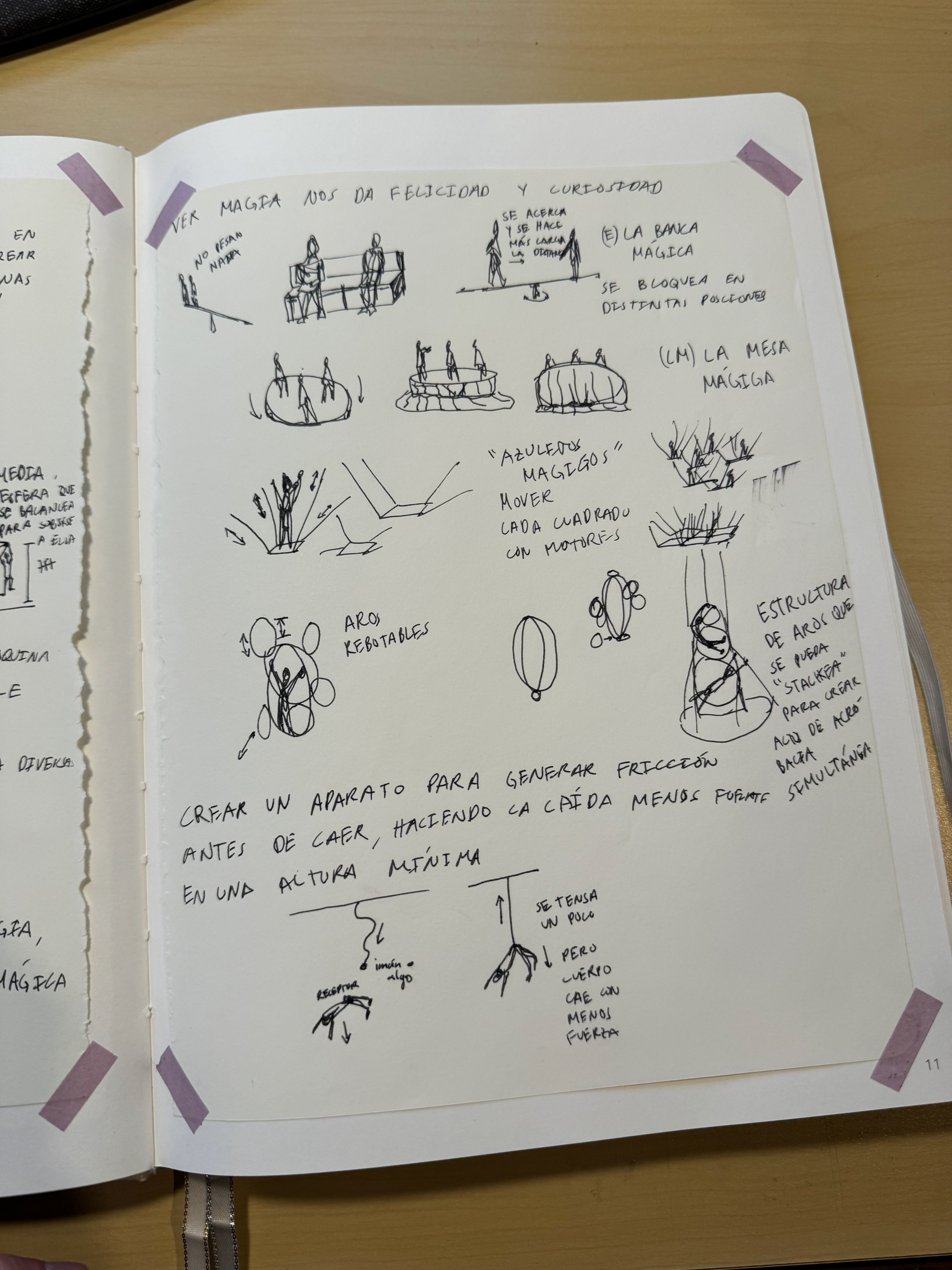 My initial sketches explored interactions between the body and mechanical structures. But the question kept emerging: is the body the scenography, or is it the structure the body activates? This tension became central to our exploration.
