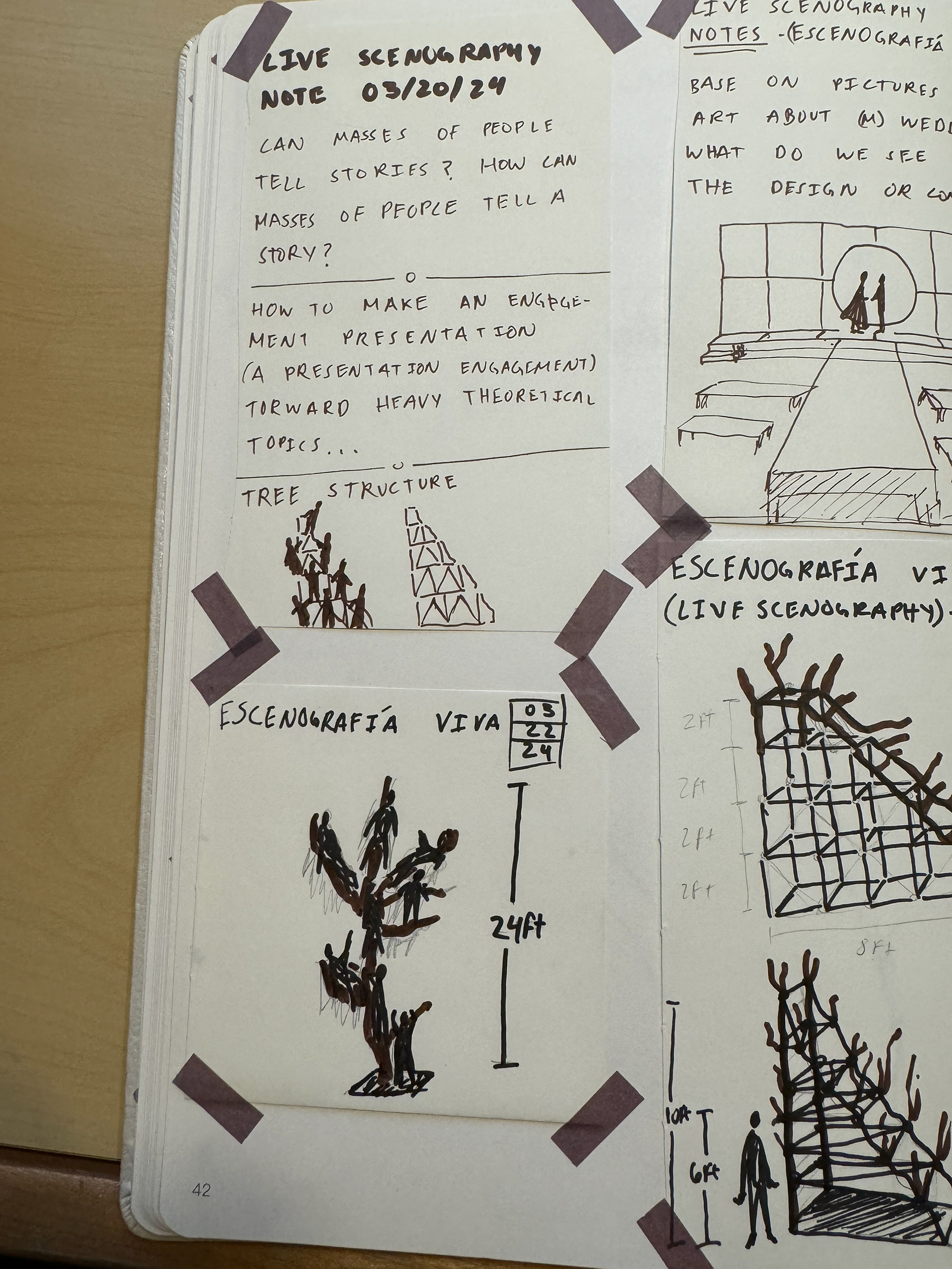 At the heart of Ephemera Genesis is the concept of Escenografía Viva (Living Scenography)—a vision where scenic elements are as alive as the performers themselves. The following sections trace the creative path my collaborators and I followed to bring this idea to life.