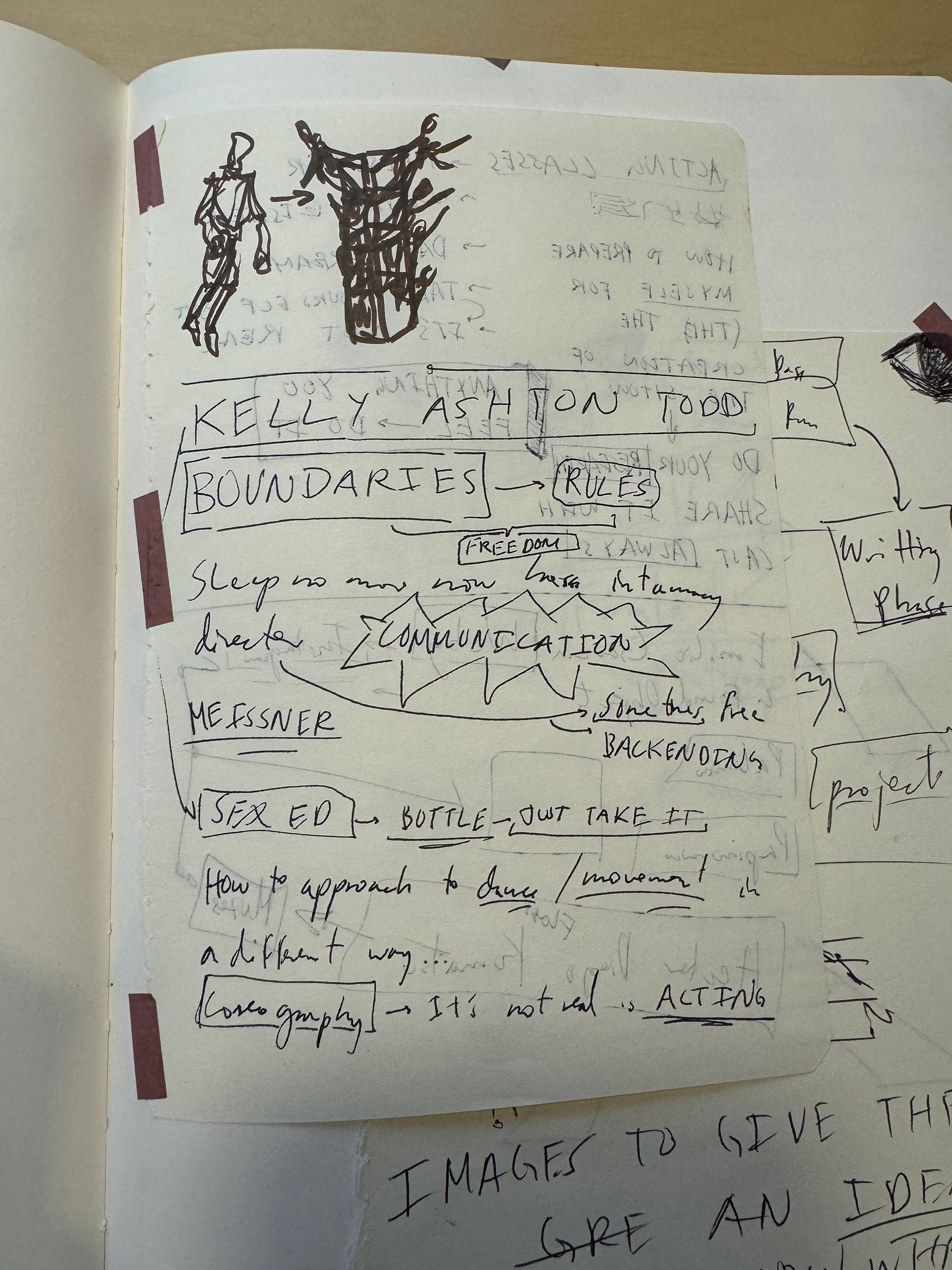 I began by observing how artists and performers around the world blur the line between body and space. I reflected on ancient practices of carving bodies into architecture and asked: have we evolved that idea into dancers becoming living architecture? Can the body itself be scenography?