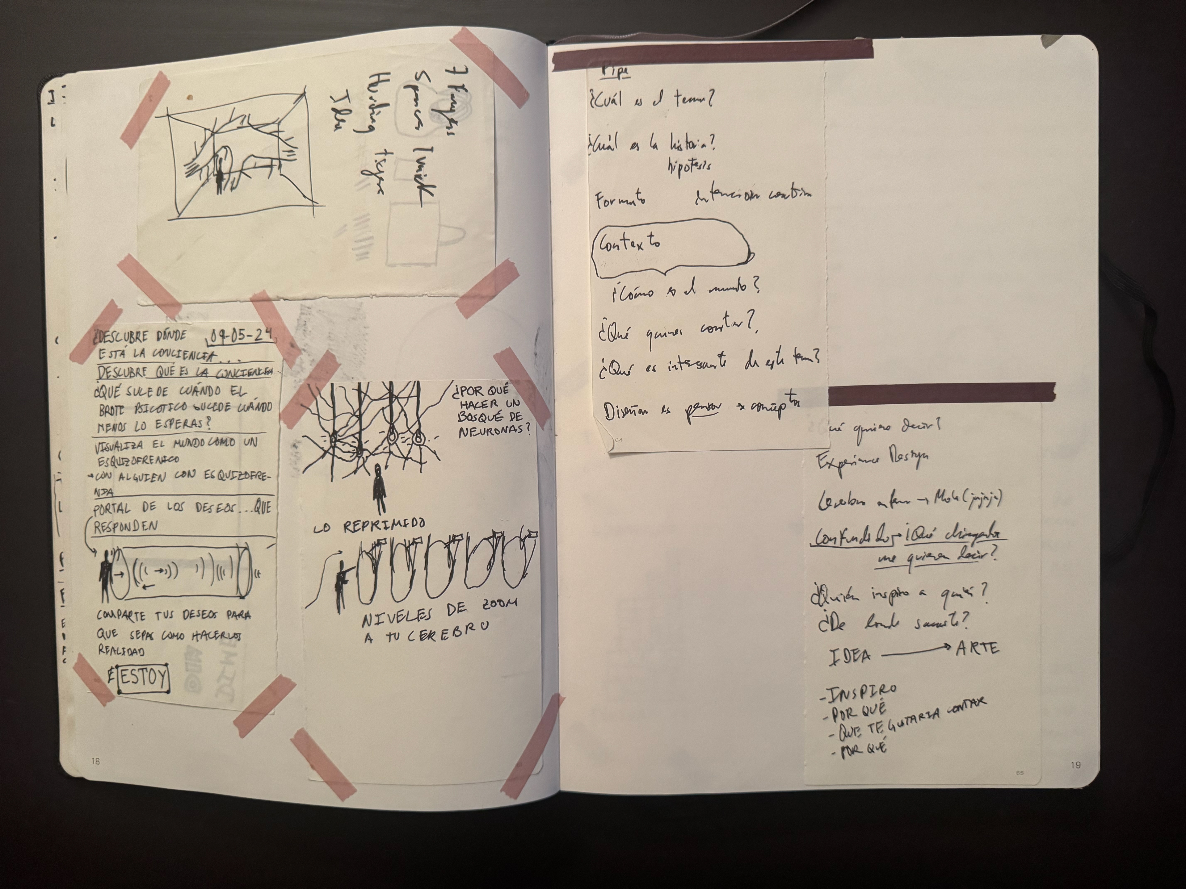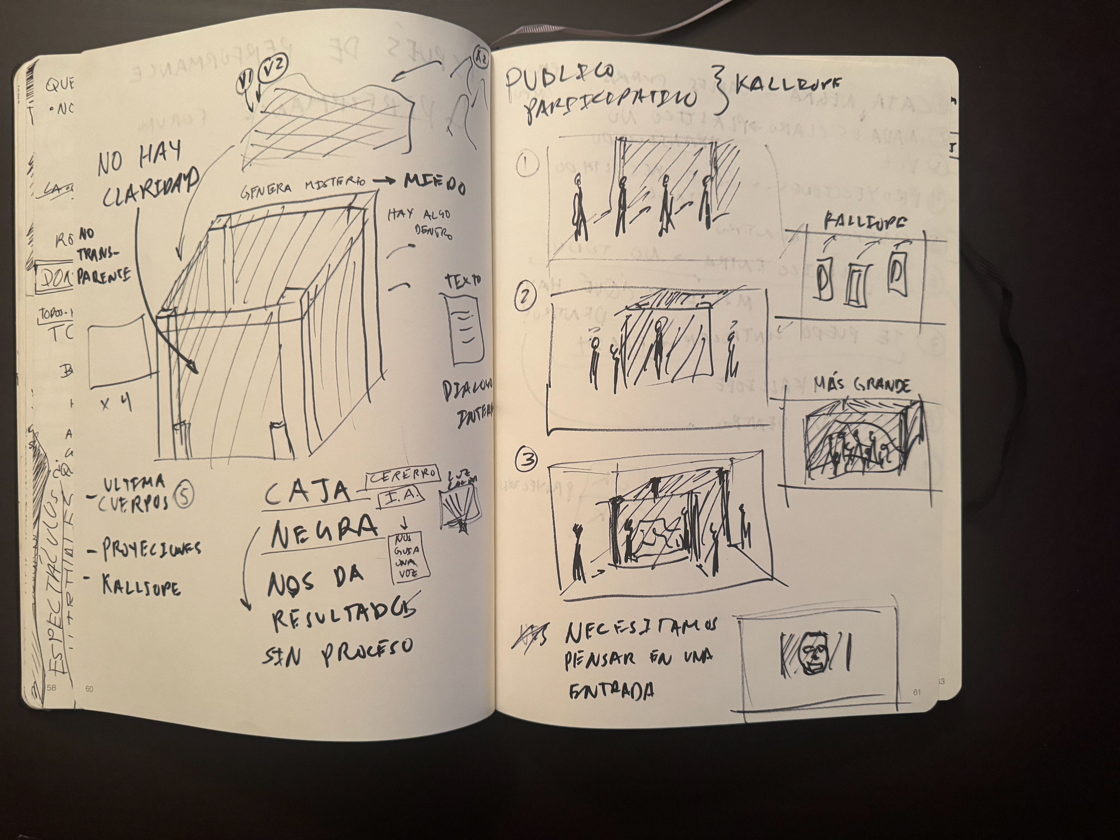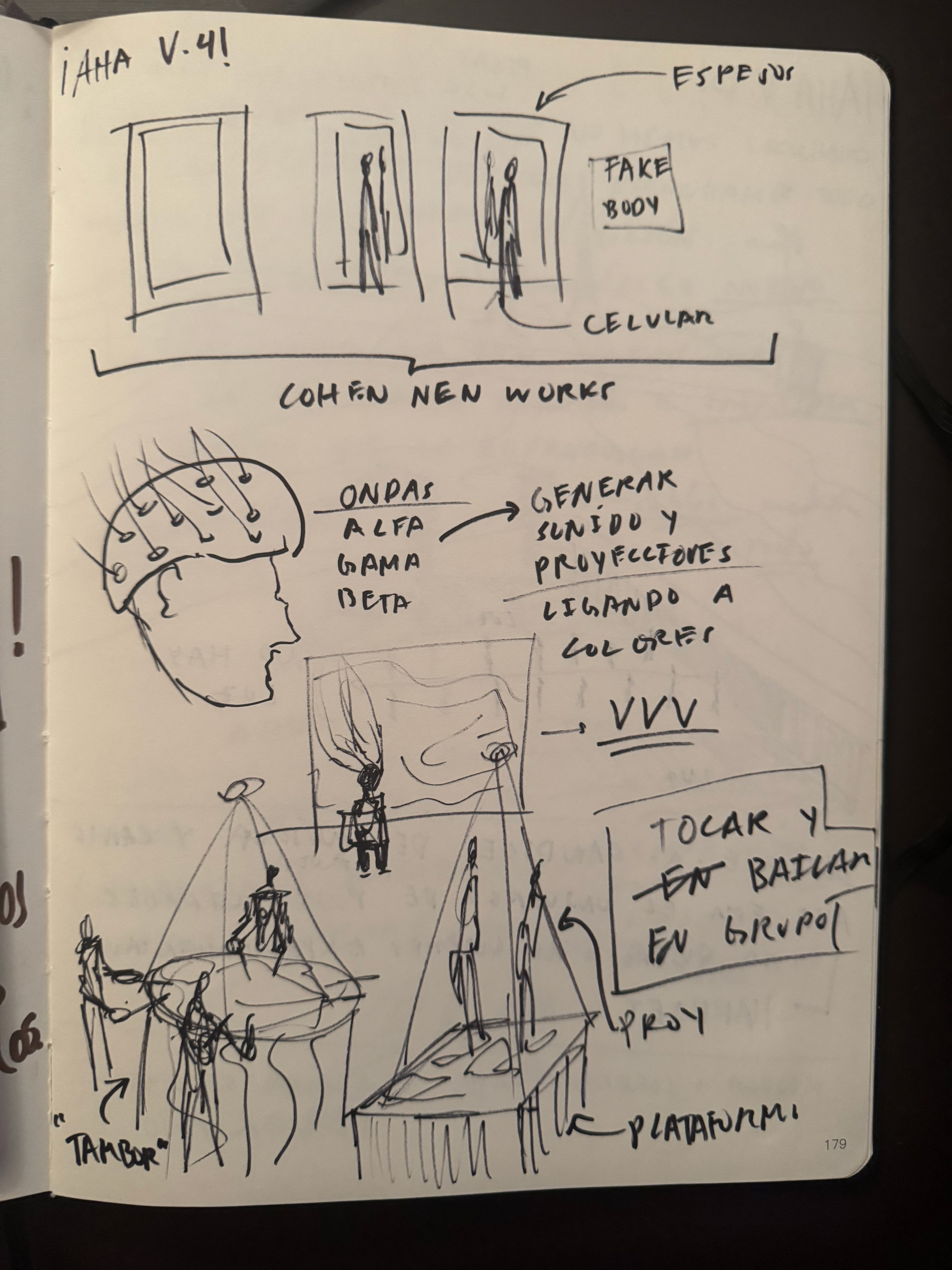 I started imagining spaces where the audience could be neurons or where the brain itself—like a black box—could be visualized. Most of my sketches were inspired by the stories and metaphors shared by the technologists and neural experts during our early sessions.