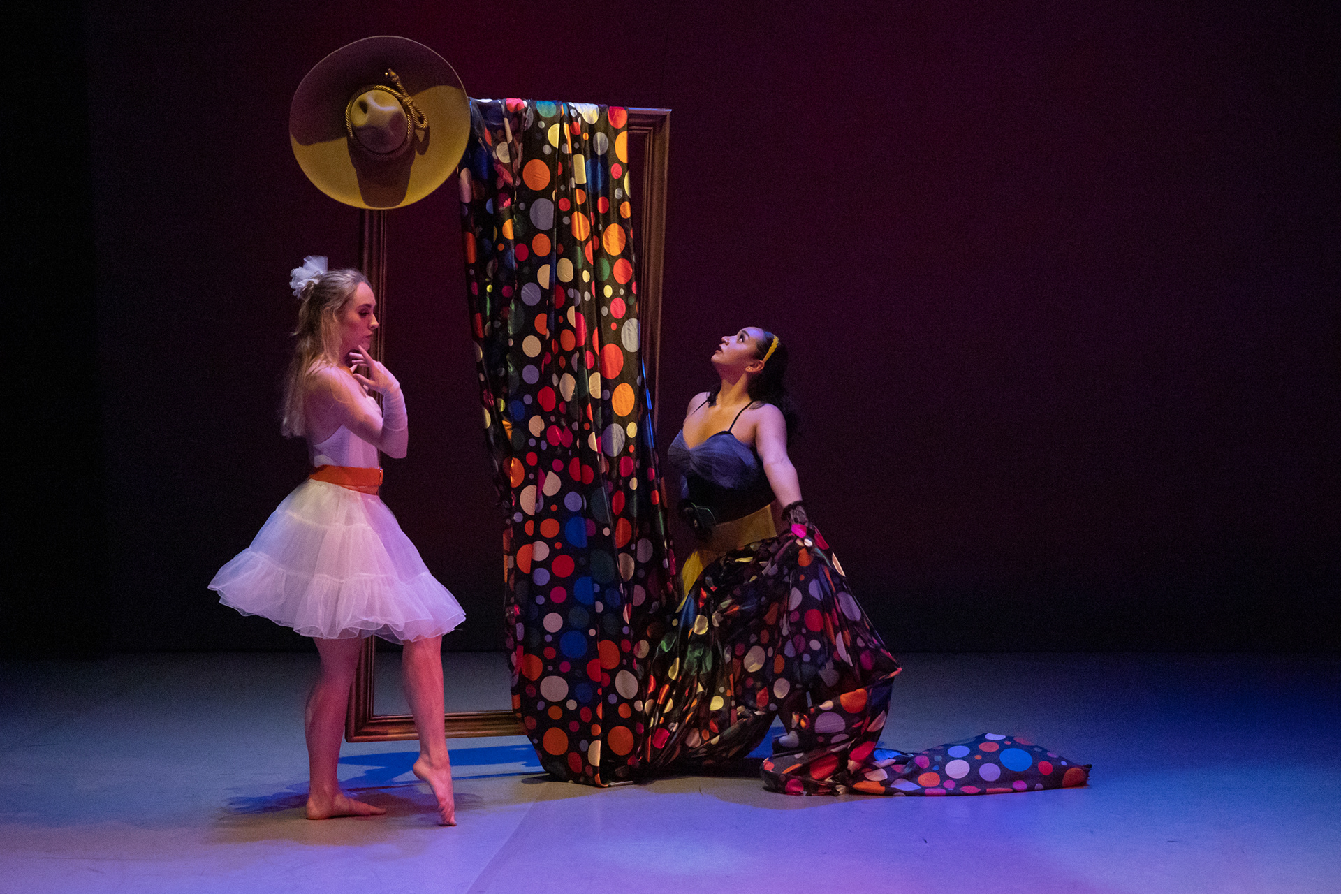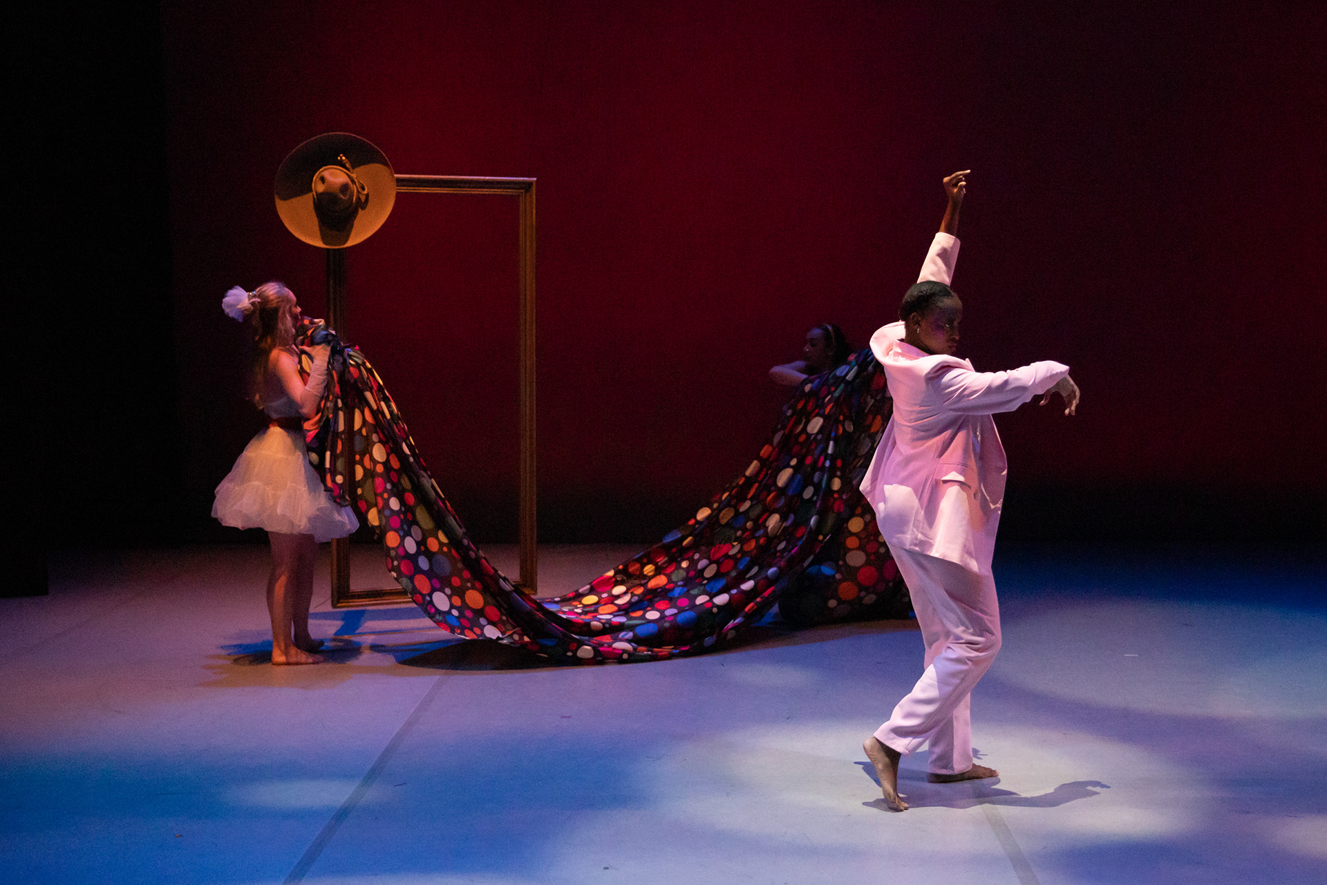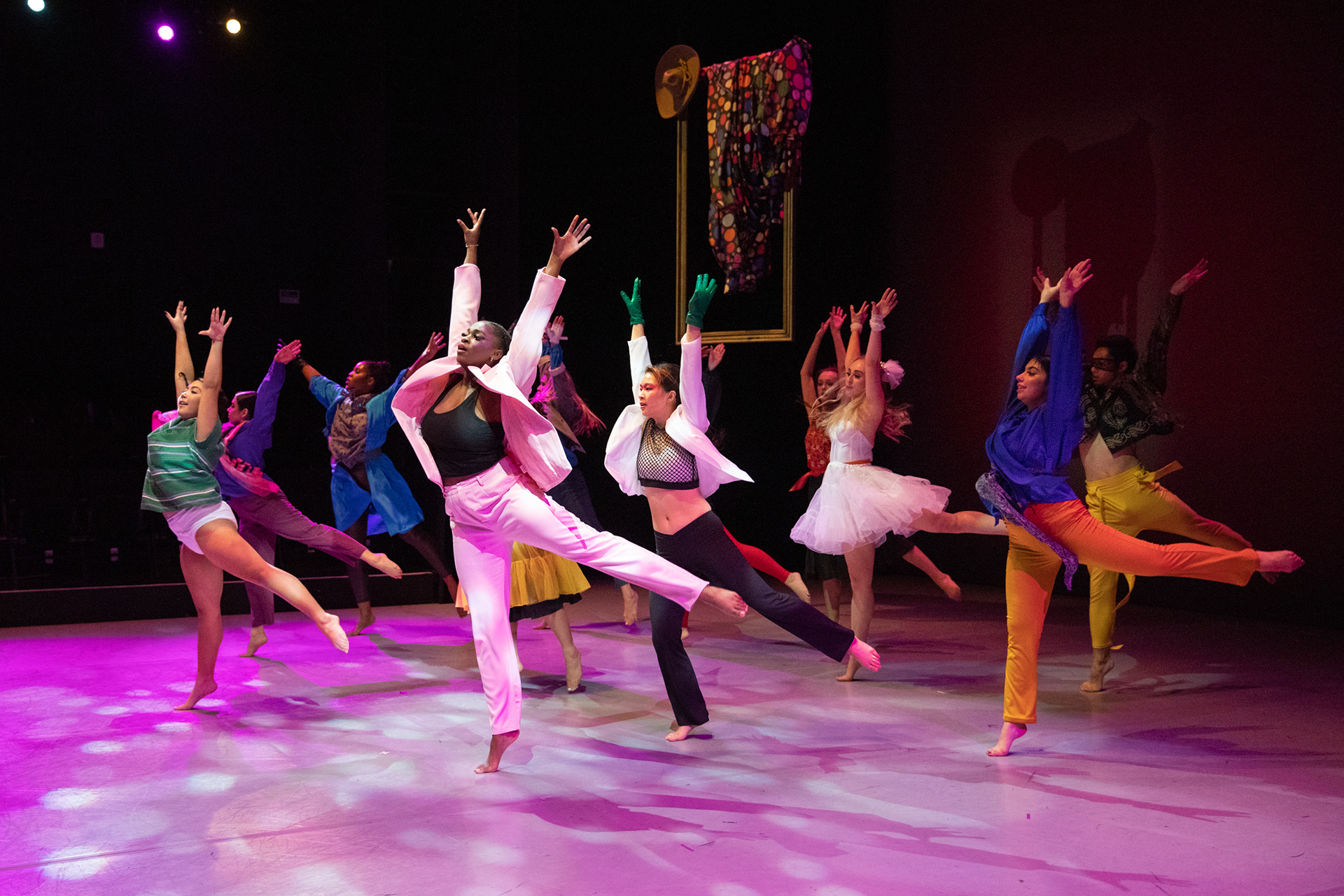Inspired by the bold aesthetics of an '80s music video, Pop Refuge is a dance piece centered around transformation. A key design shift introduced a mirror—through which the main character discovers a portal to an entirely new world.